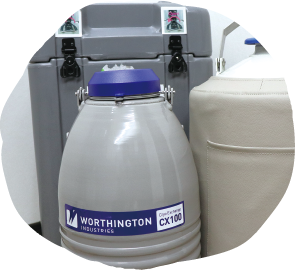 Future meなら高性能なドライシッパーを使って、凍結精子や凍結胚の超低温管理移管が可能です。Future meの使用する大型ドライシッパーは液体窒素により-196℃温度帯(-150℃以下基準)に冷やされて約2週間もの長期間、お客様の大切な凍結胚や凍結精子を良好な状態で保つことができます。