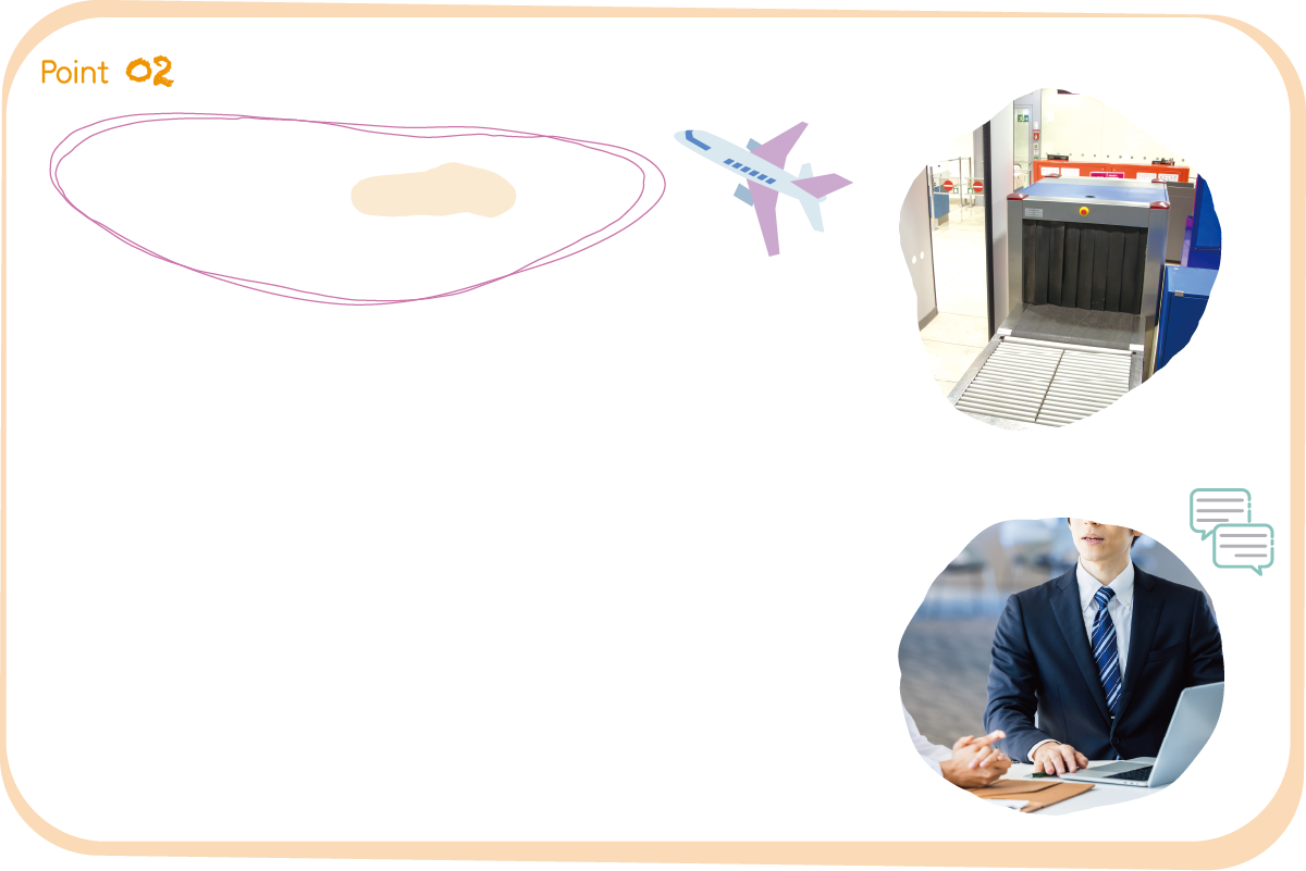 国内移管といっても、航空機を利用して移管が必要な時もあります。一般的に飛行機に乗る時はX線検査による危険物のチェックがあります。大切な凍結精子や凍結胚がX線の被爆でダメになってしまったら・・・。Future meならそんなケースでも安心です。事前に航空会社に届けることによって、目視によるチェックでX線検査を回避することが可能です。
